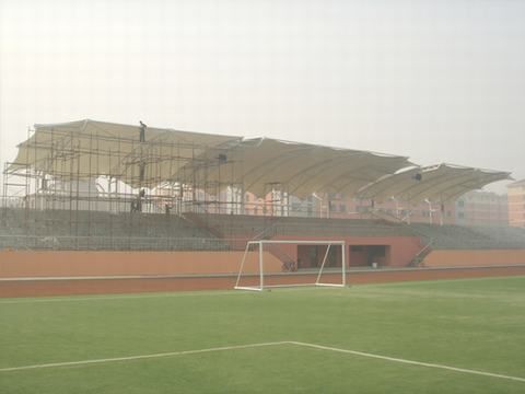 張拉膜在學校體育看臺上的應用,為學生提供一個良好的乘涼、遮陽場所。